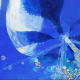物質としての顔料、色彩と図像を交わらせながら、躍動し揺れ動く心の動きを燃えるような青色の中に表現します。