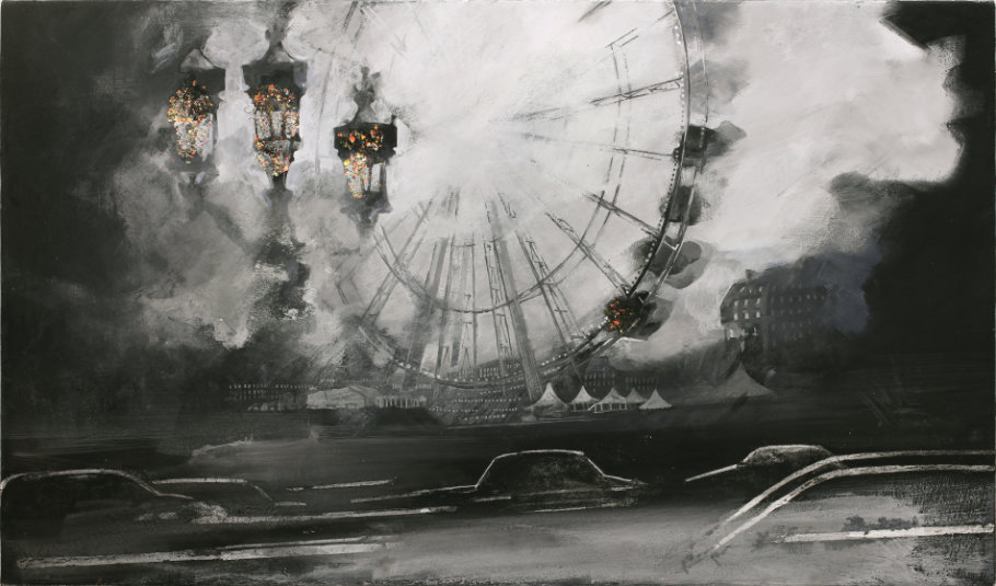 City Mirage / Tuileries 2026 24.2 x 41 cm (M6) Cotton on Panel, Mixed Media